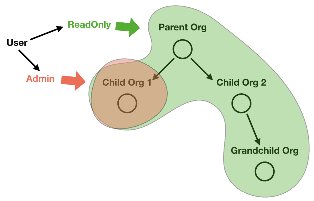But sometimes, you have more complex use cases that this approach cannot accommodate. For example, I recently implemented a custom IAM system to cater for an app where users can have different roles at multiple organizations within a hierarchy. And the access a user has depends on both the roles it holds at those organizations but also the roles it inherits from the hierarchy.