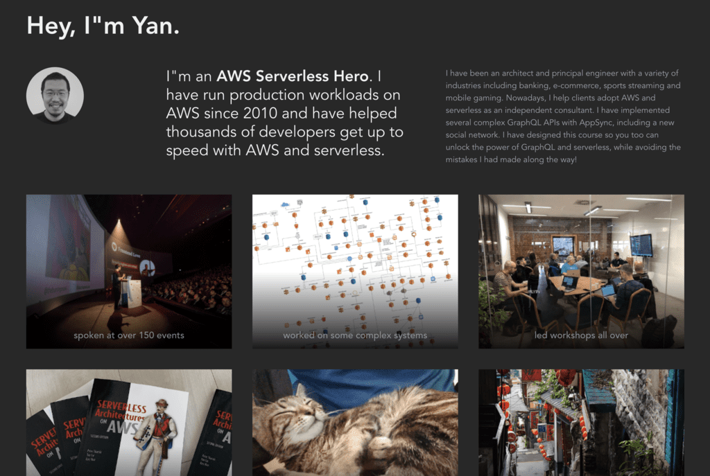 As I rebuild the landing page for the AppSync Masterclass I wanted to give this boring “about me” section a facelift.