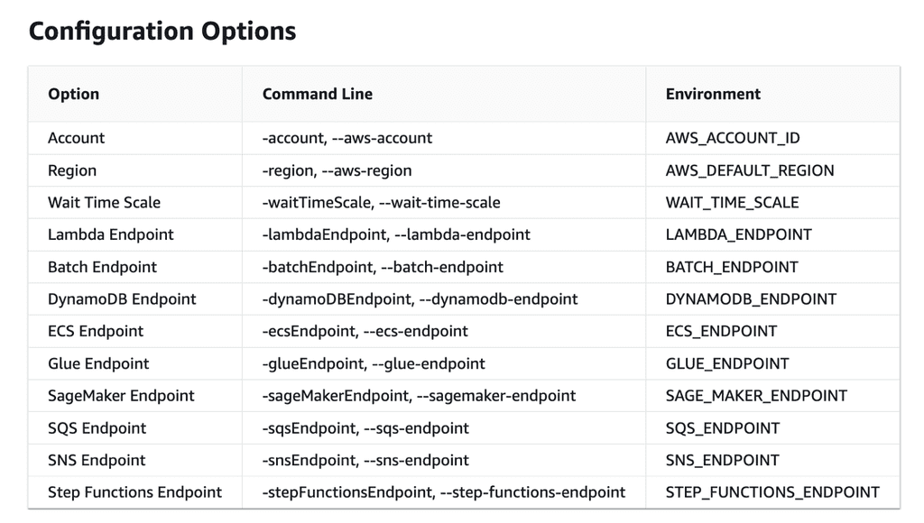 In practice, that is really hard to achieve because it doesn’t support CloudFormation references. Instead, I find the best way to use Step Functions Local is to bridge the gaps in our end-to-end tests.