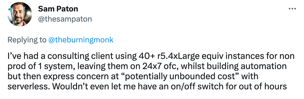 I lose count of the number of times clients have told me how they went all-in on serverless after an initial successful experiment. There are many such examples from my podcast alone.
