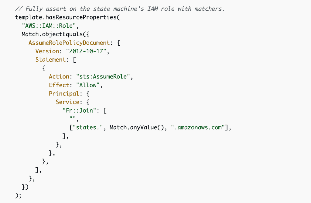 With this type of testing, anytime you change your CDK code you will also have to change the corresponding tests. It’s double the work with no meaningful returns.