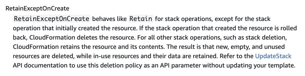 I have used DynamoDB in the examples above. But it’s worth pointing out that DeletionPolicy