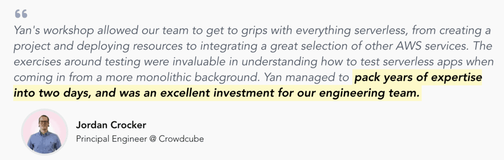 The next cohort of my Production-Ready Serverless workshop is starting on Monday, October 2nd. Registration closes on Friday, October 6th at 23:59PM UTC.