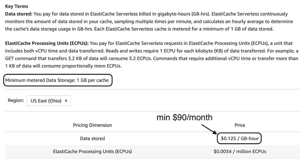 Not as bad as OpenSearch “serverless”, but this one comes with a minimum cost of $90/month even if you have no data.