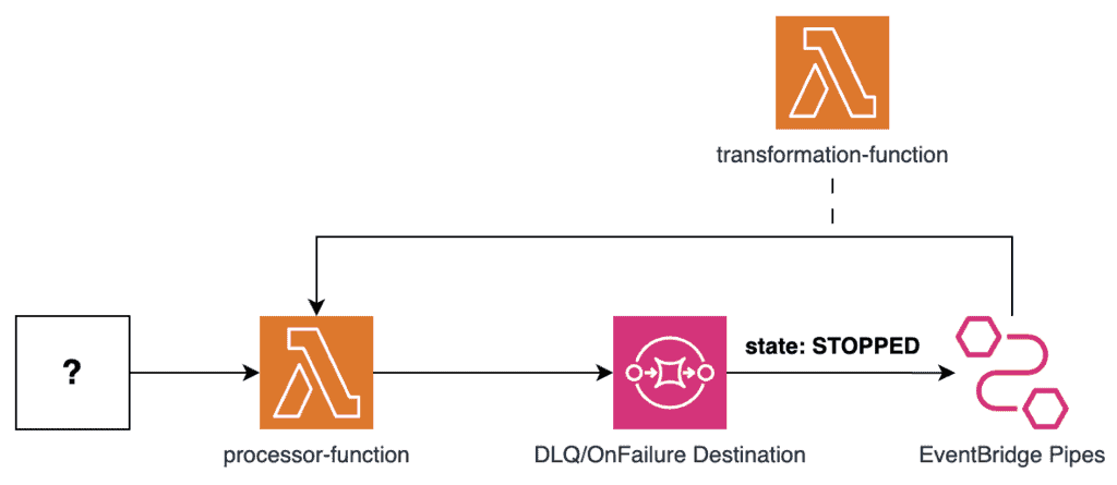 Using this approach, you can use EventBridge Pipes to send the failed events back to the original target without needing to introduce another Lambda function into the mix. Resulting in a simpler architecture with fewer moving parts and less code for you to maintain.
