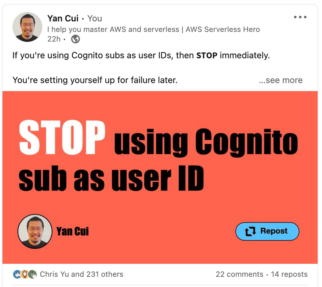 [1] Why you should stop using Cognito subs as user ID