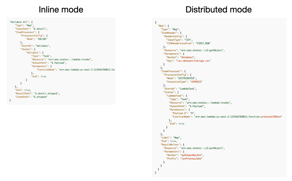takes the input array from the state input and allows up to 40 concurrent iterations. This is good enough for most use cases. But it falls short when you have a large input array or require higher concurrency.Distributed mode