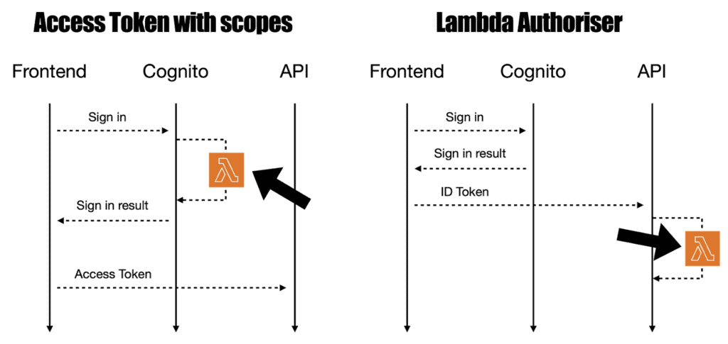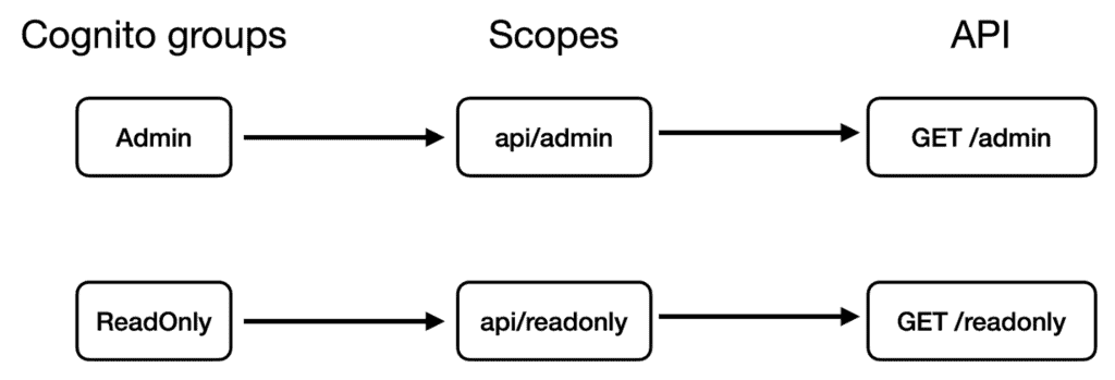 This time, we’ll look at a different approach – using access tokens with scopes. In this setup, the identity provider (Cognito, in our case) manages both authentication and authorization, offloading these responsibilities from the API.