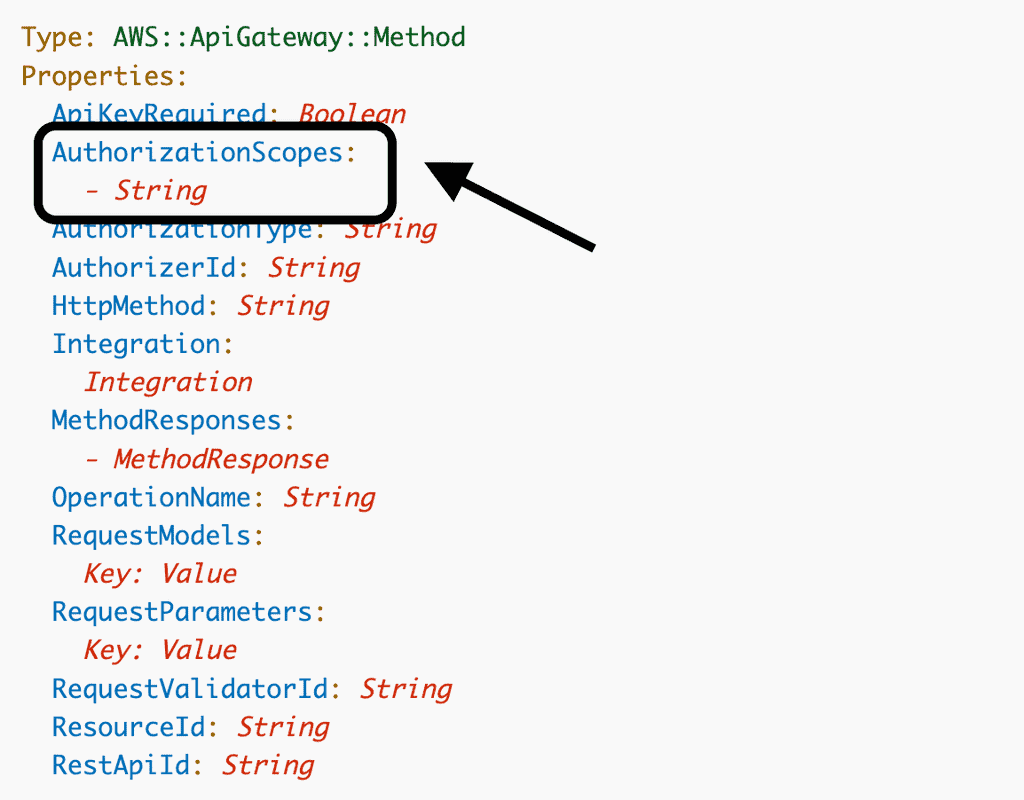 To ensure API Gateway respects these scopes, configure your API Gateway methods with an AuthorizationScopes