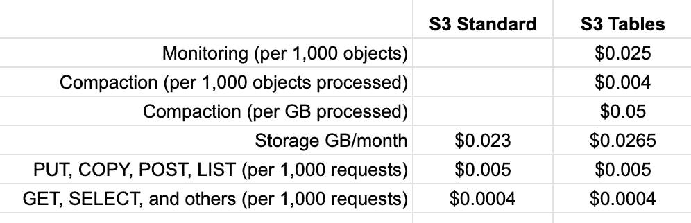 Notice that there is additional data monitoring and compaction costs. These are inline with the likes of S3 intelligent tiering. For the query performance improvements, the pricing makes sense.