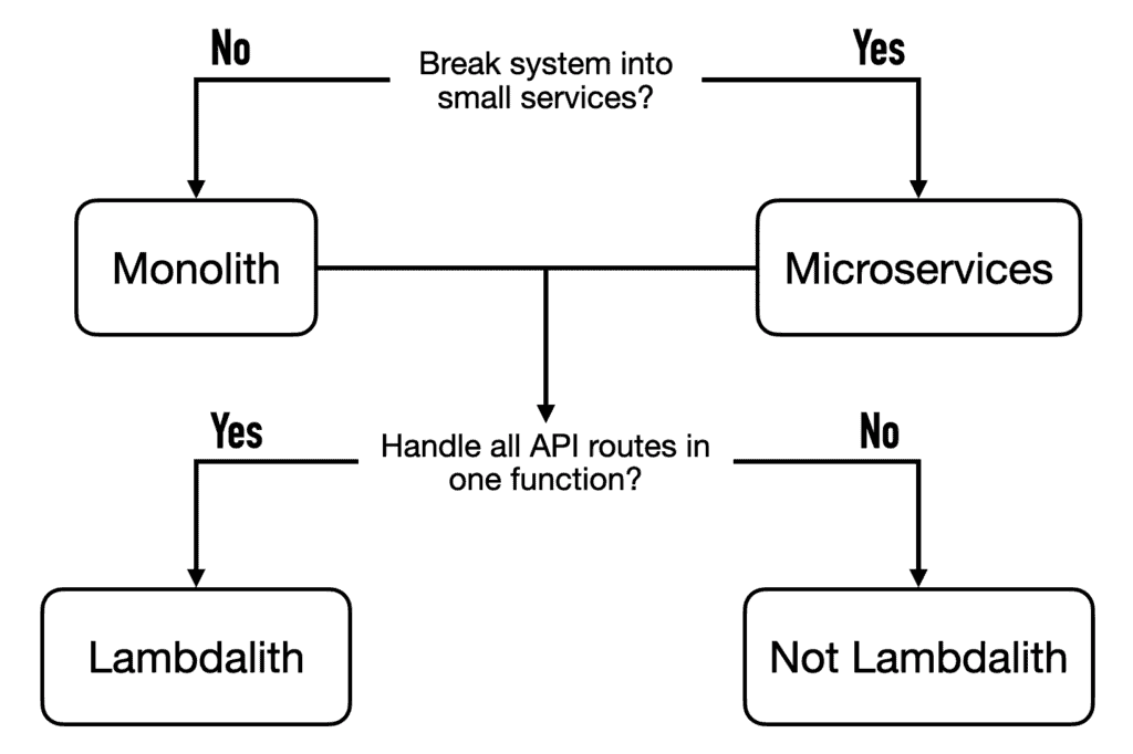 But I’d like you to keep in mind that the engineering decision determining whether you have a Lambdalith is whether to handle all the API routes in one function, regardless of the role the API plays within the larger system.