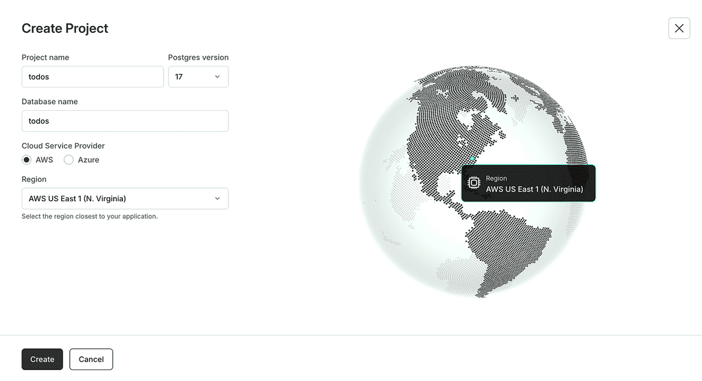 First, sign up for an account with Neon at neon.tech and create a new project. Let’s call the database “todos”.