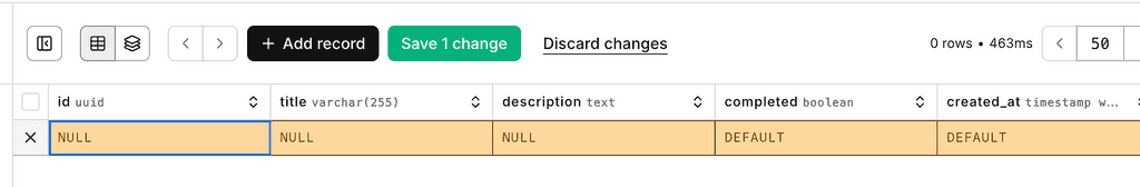 Currently, there is no data. However, you can use the “Add record” button to add a row directly in the console.